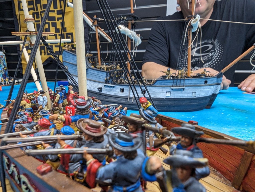 Our random draw from the entire week’s worth of entries will receive some free minis! Either a pack of 4 Blood & Plunder minis of the nationality they are playing, or an Oak & Iron Ship.