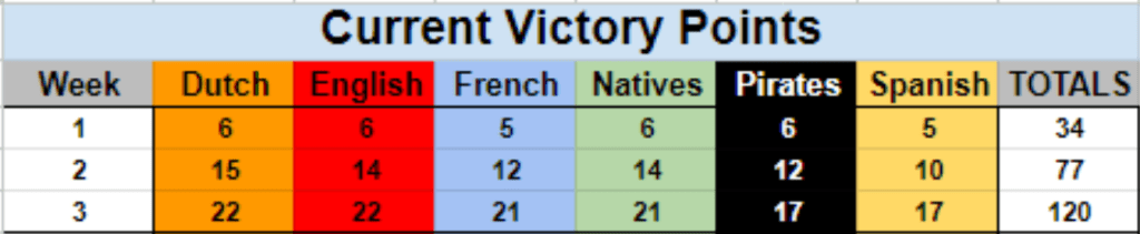 Danny’s winning entry was a game for the English British Raiders. This means that England is the receiver of the Bonus Victory Point from the event. Congrats to the English on their bonus.