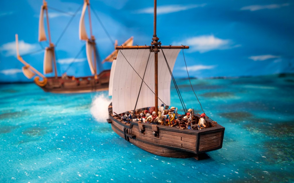We randomly draw names from those who indicated they started playing Blood & Plunder (or Oak & Iron) in this calendar year on the campaign entry form. For this, our second New Player Prize Package, we’re giving away a Barco Luengo and 4 packs of new resin minis ($142 value).