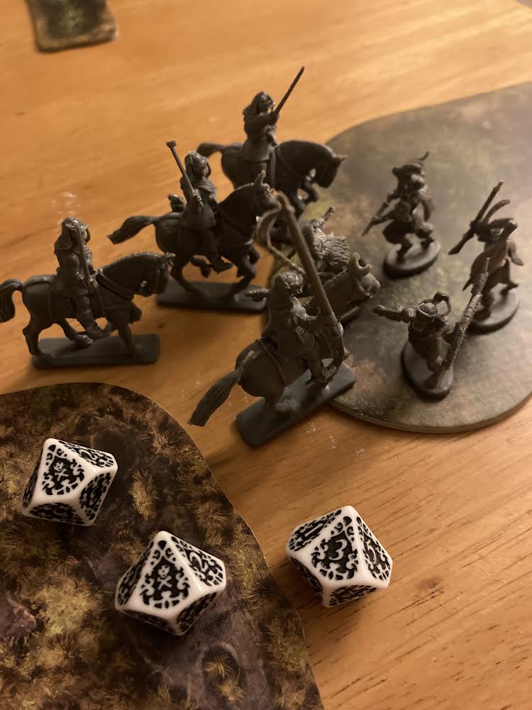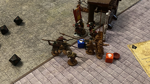 Of the 3 quests introduced last week, only one has been completed so far. Daniel Wray successfully repelled a charge from Lanceros, pictured below. I like the use of 1st edition Heroscape dice as markers!