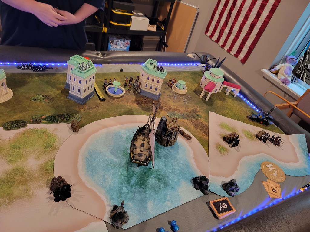 I wanted to give you all some good feedback on your pictures. As I scroll through the many pictures, there are a lot of good ones with your game and models showcasing your gameplay. In the pictures, I notice a nice mix of terrain creation…namely 3D printed stuff. I too have all those cool models from Iain Lovercraft’s “Rum and Razing” and the “Treasure Island” sets. There are lots of good stuff in those files for both on land and on sea.