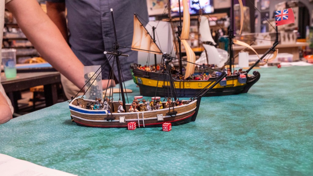 On the other side we have 3 substantial European ships, British Navy and Flibustiers Nau, broken into 200, 150 and 200 point forces.