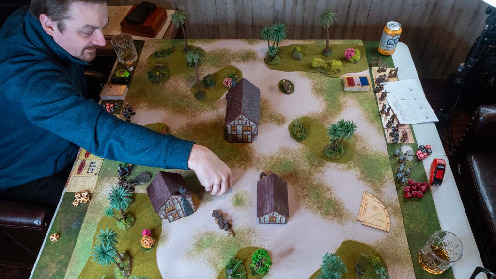 As we continue to highlight material from the Raise the Black expansion book, we both utilize 18th century militia factions. Bryan uses a French Caribbean Militia faction, focusing on mid level and elite troops with solid musketry. Joseph uses a Dutch Caribbean Militia force with a mix of units from Inexperienced Militia to solid Latere Soldaten, all led by Jeremias van Collen, a 30pt commander!