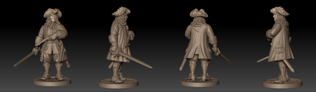 This sculpt is to represent the “generic English Commander” in Blood & Plunder. It was created with the mid 17th century in mind (1655-1670), as that is the focus of the upcoming Kickstarter project. Although its designed to be an English model, it could be used as a commander for other nations in Blood & Plunder as well!