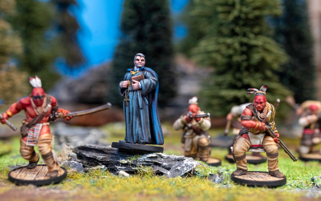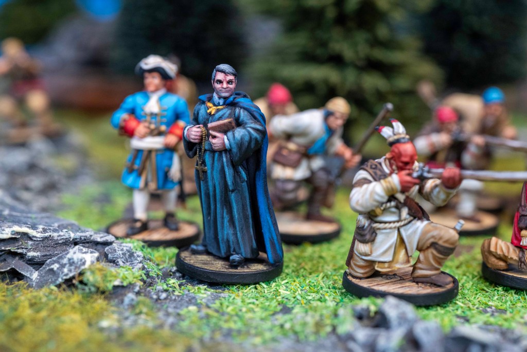 The miniature was sculpted to represent the French Jesuit Priest character found in the Fire on the Frontier expansion for Blood & Plunder.