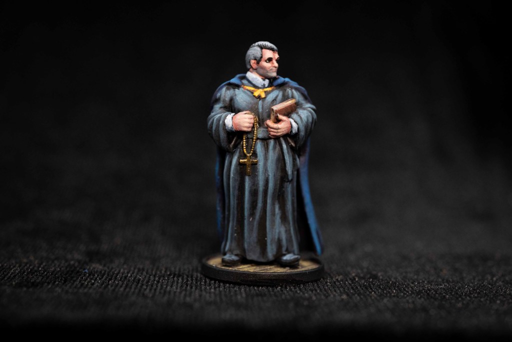 Anyone backing at the Crew level ($139) and above will be getting a bunch of free minis in this Kickstarter, including the Jesuit version above. Currently, the free Stretch Goal minis include: