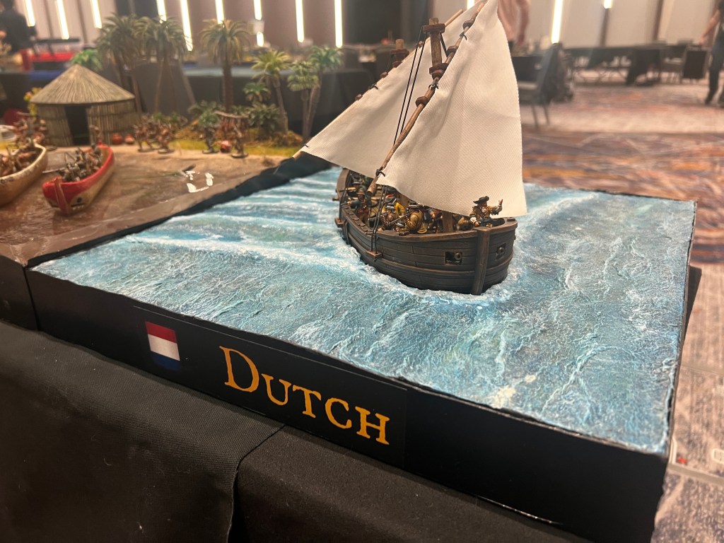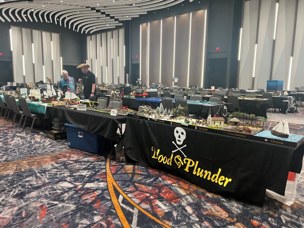 We talked about it over the next day or so, and we really wanted to participate, so we scrambled a bit and worked out the logistics. Mike Tunez took over the 3rd round of tournament management, so Jason could pack up 3 of our Blood & Plunder display boards to take them down and set them up again for judging.