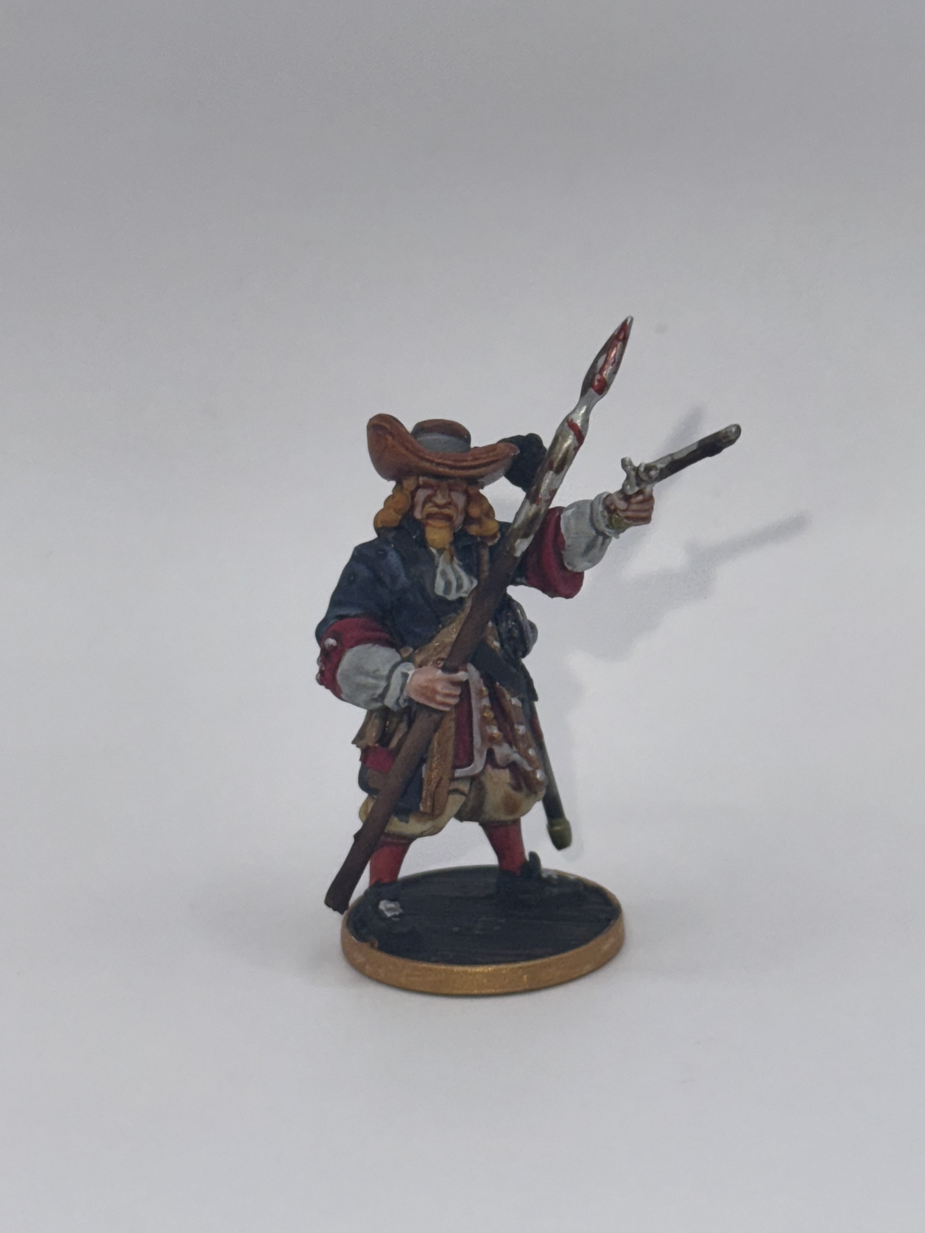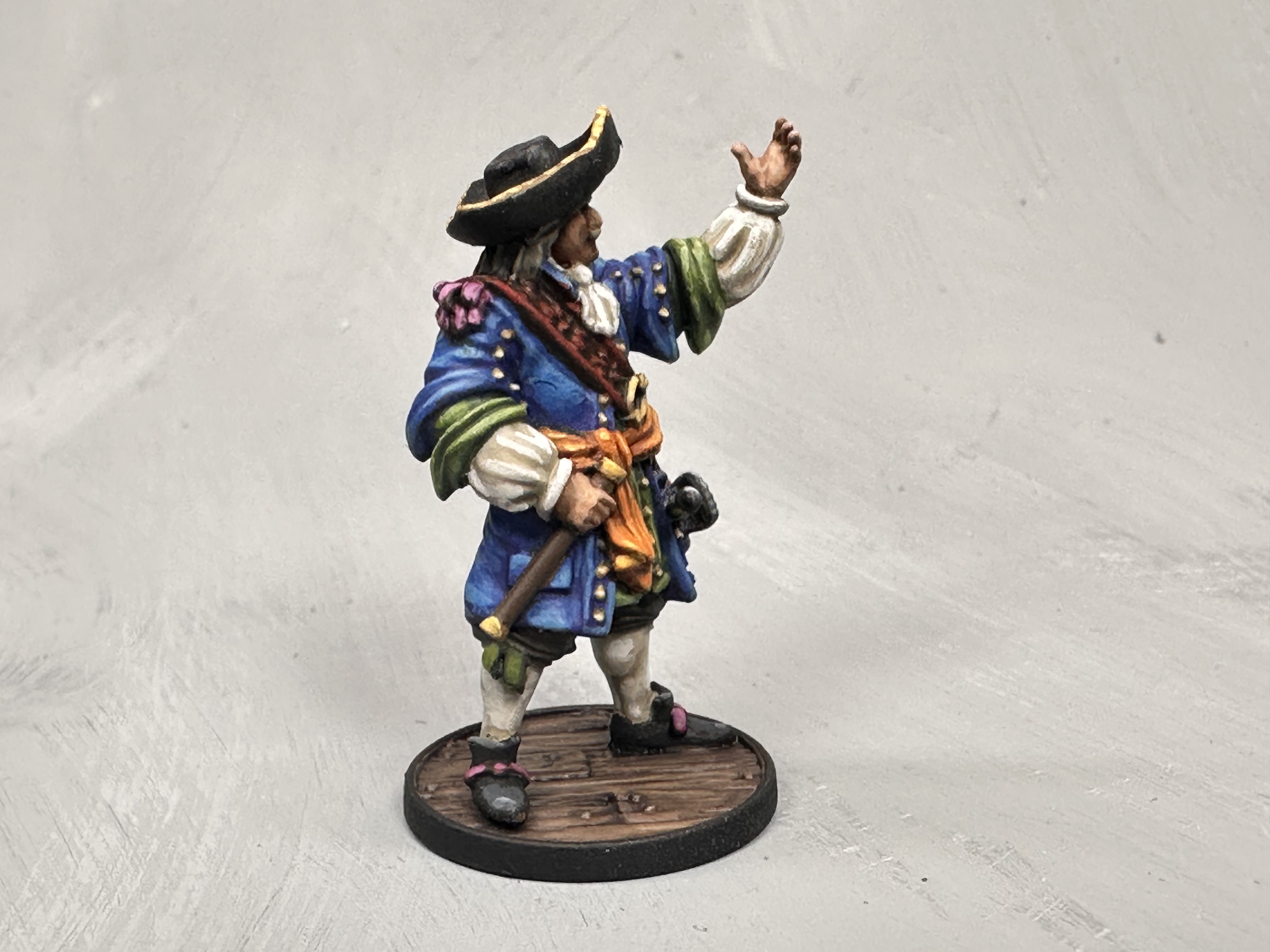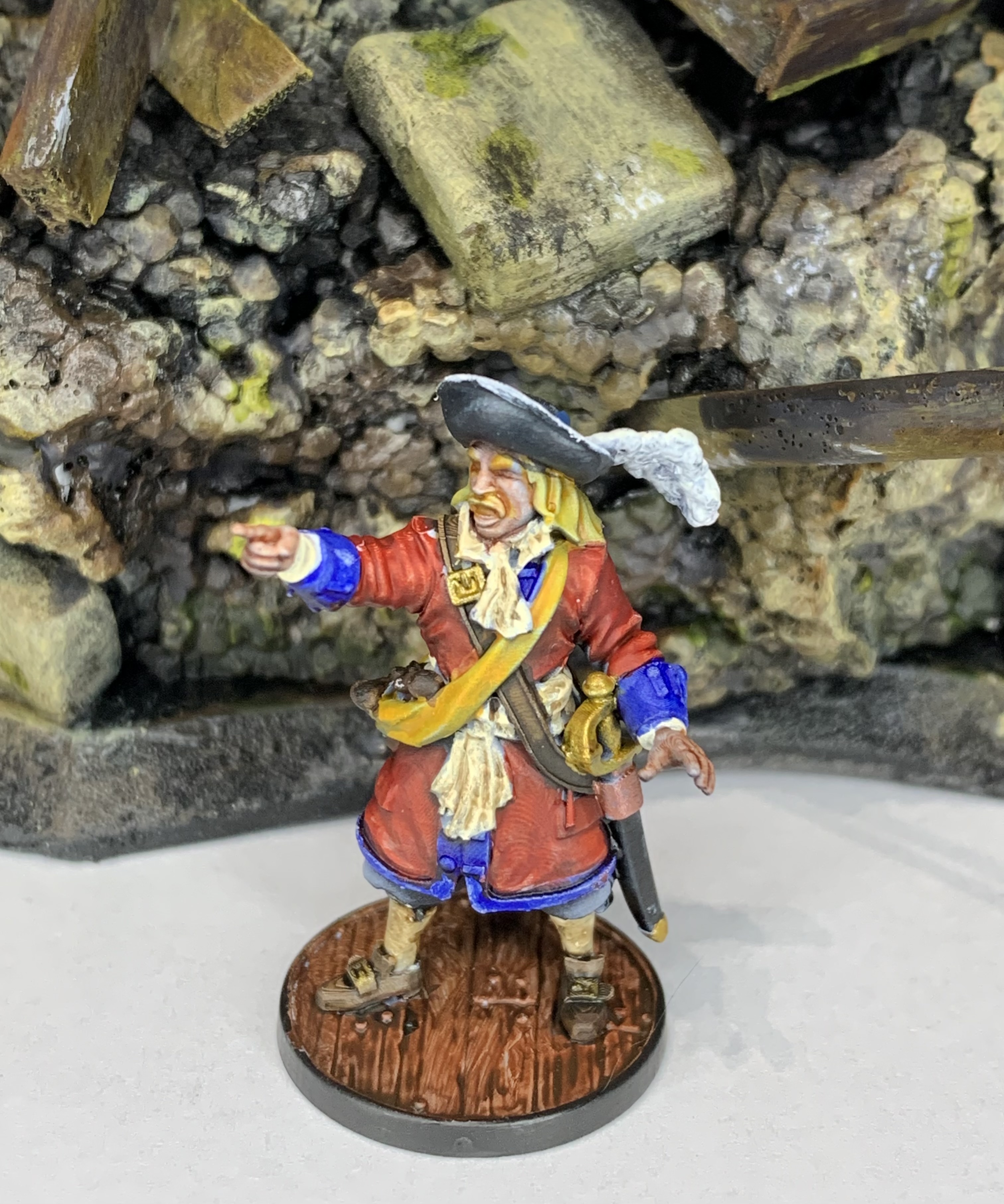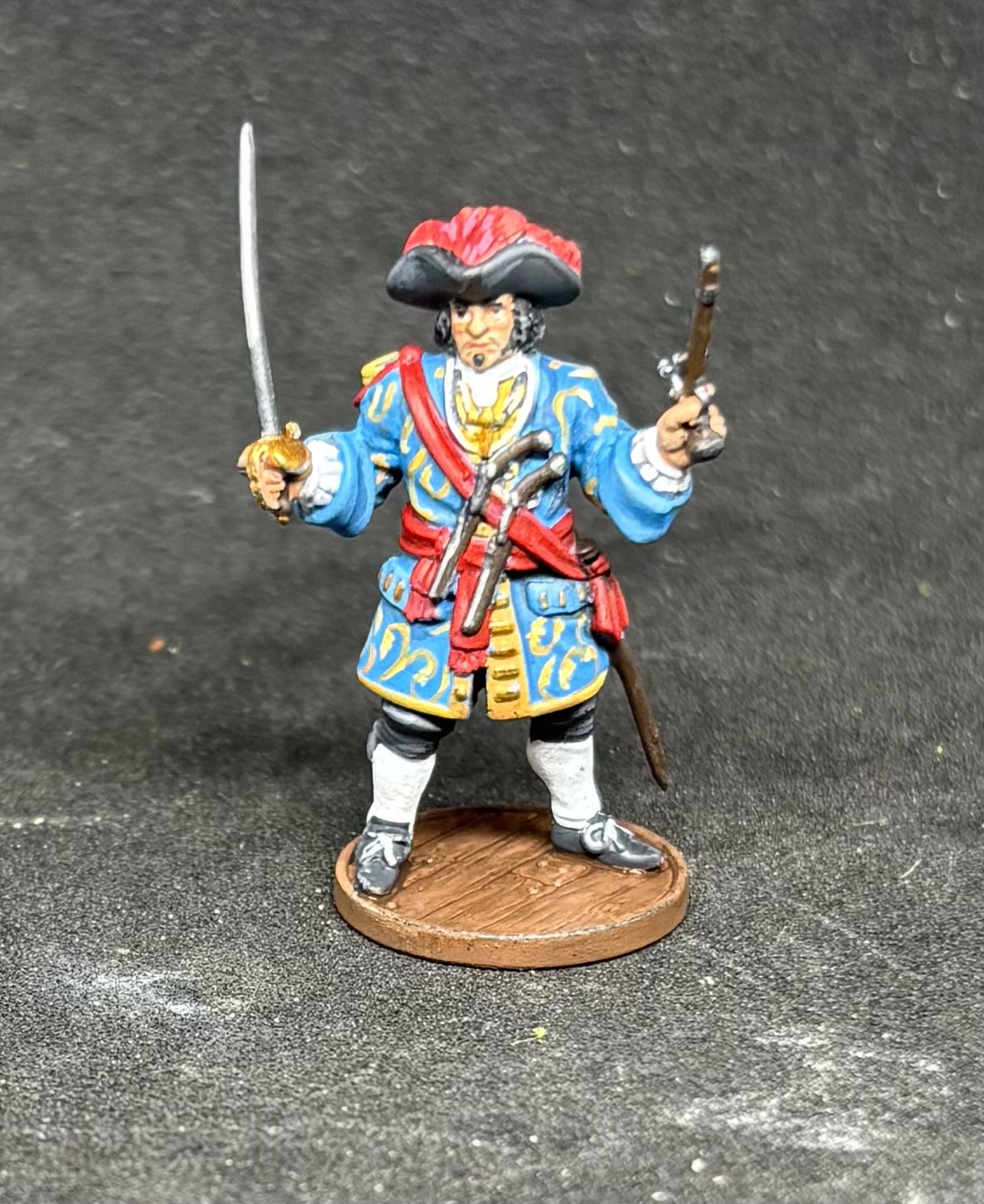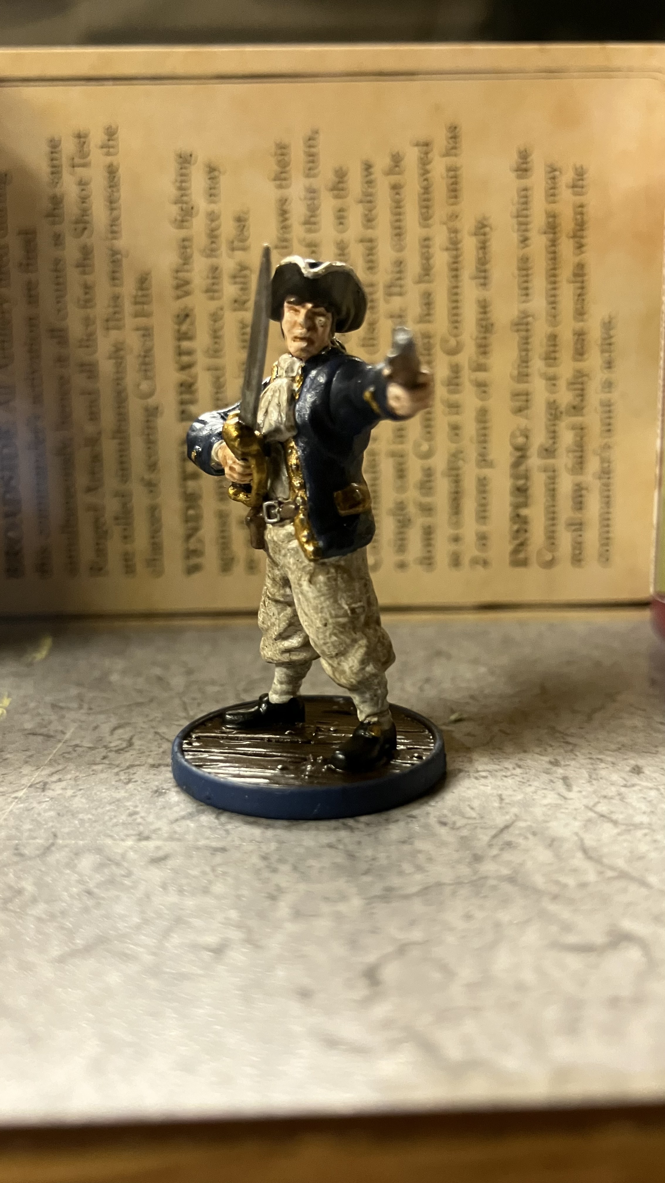 Modified custom Spanish Commander from the Box of Plunder fully painted by Tyler Carson