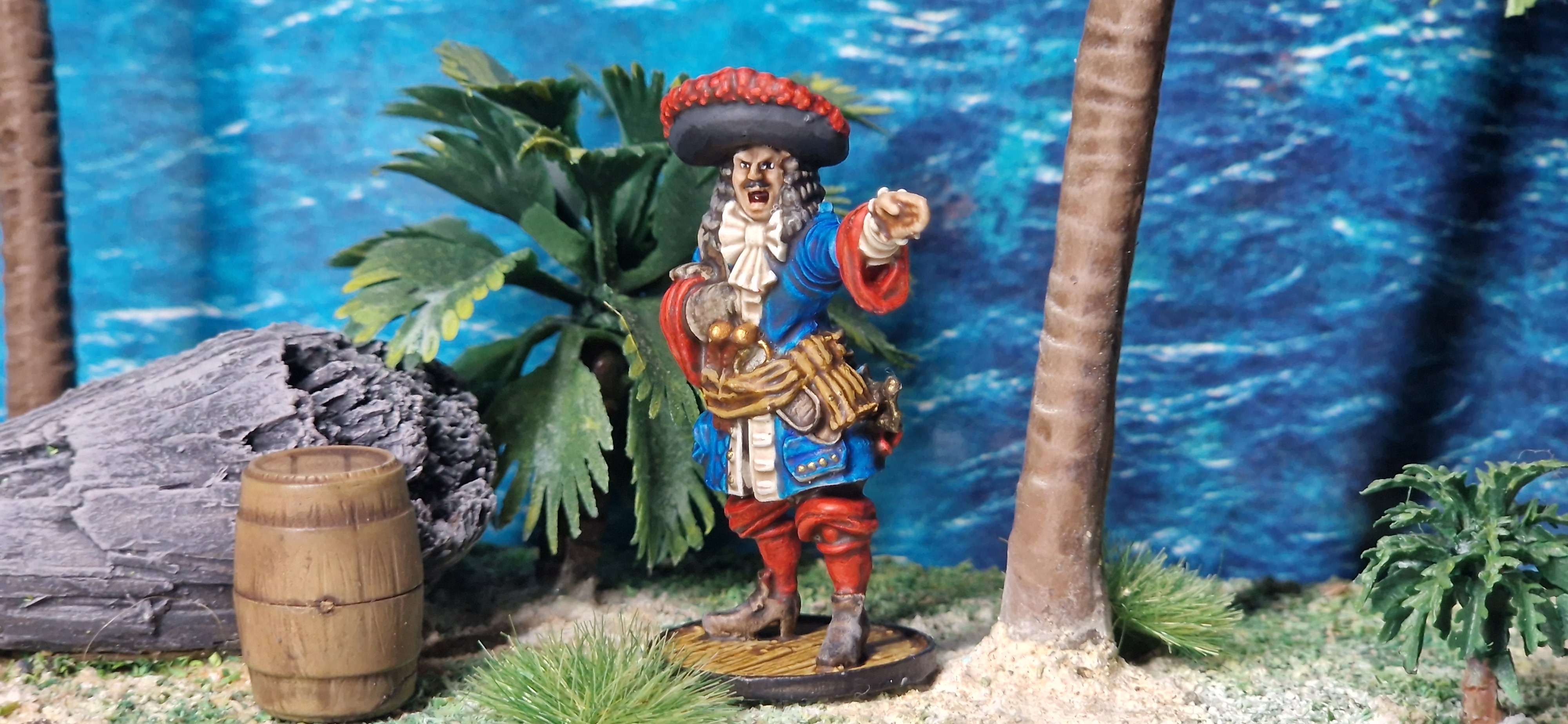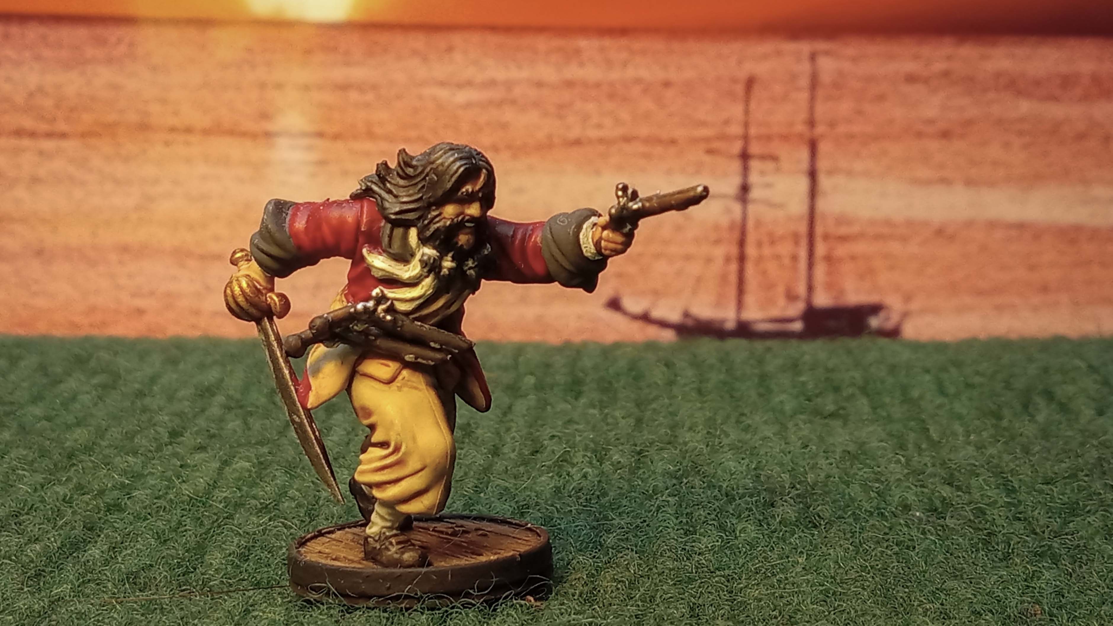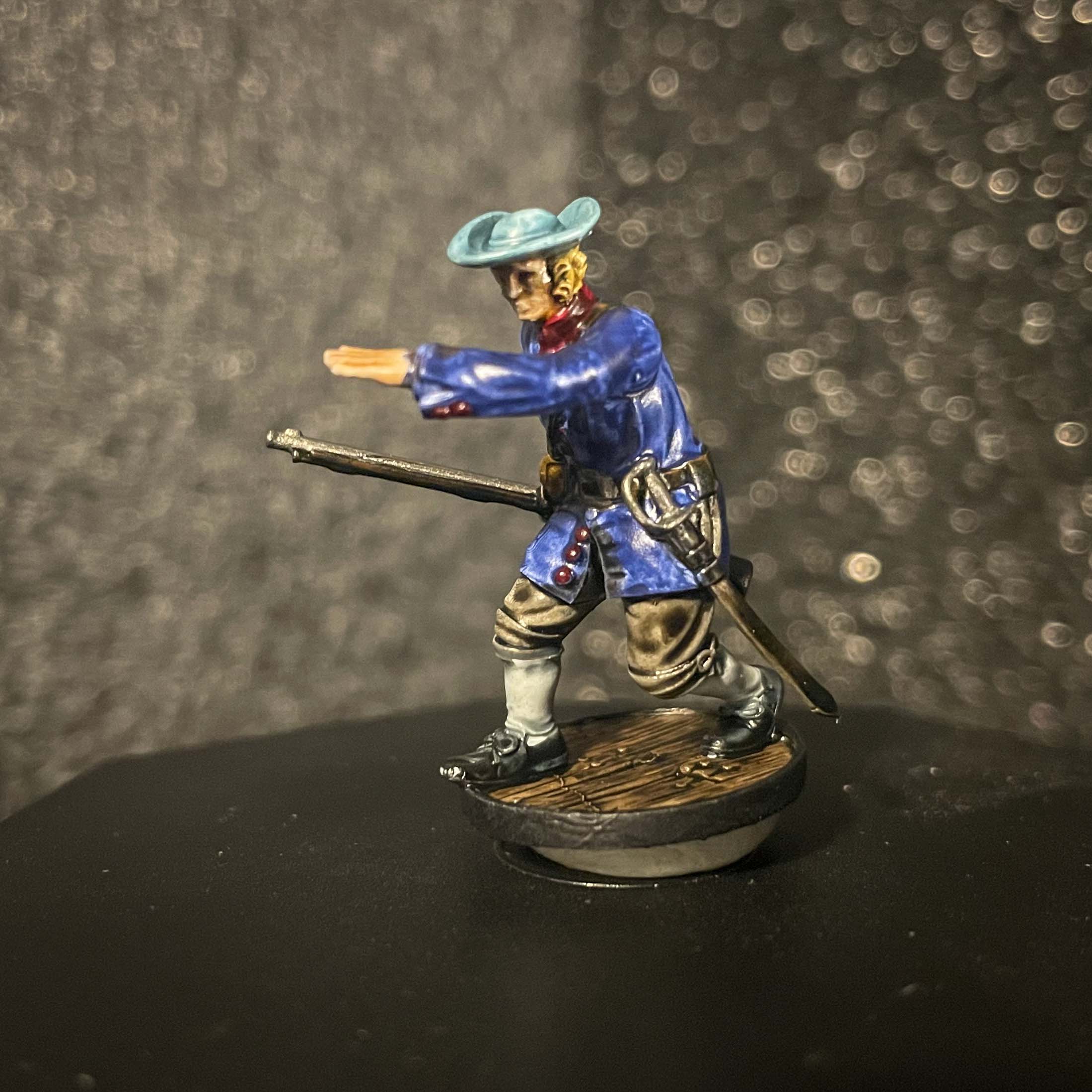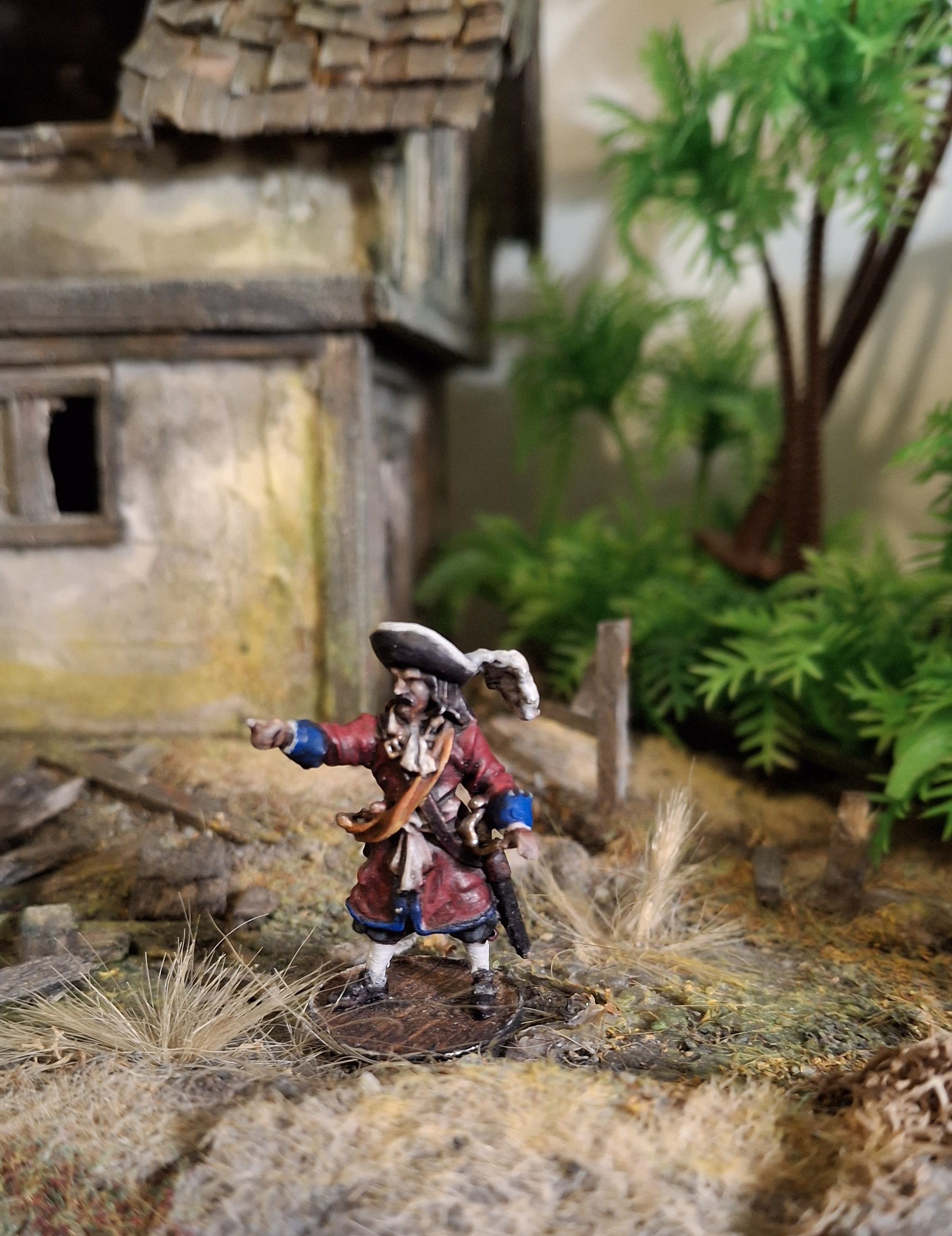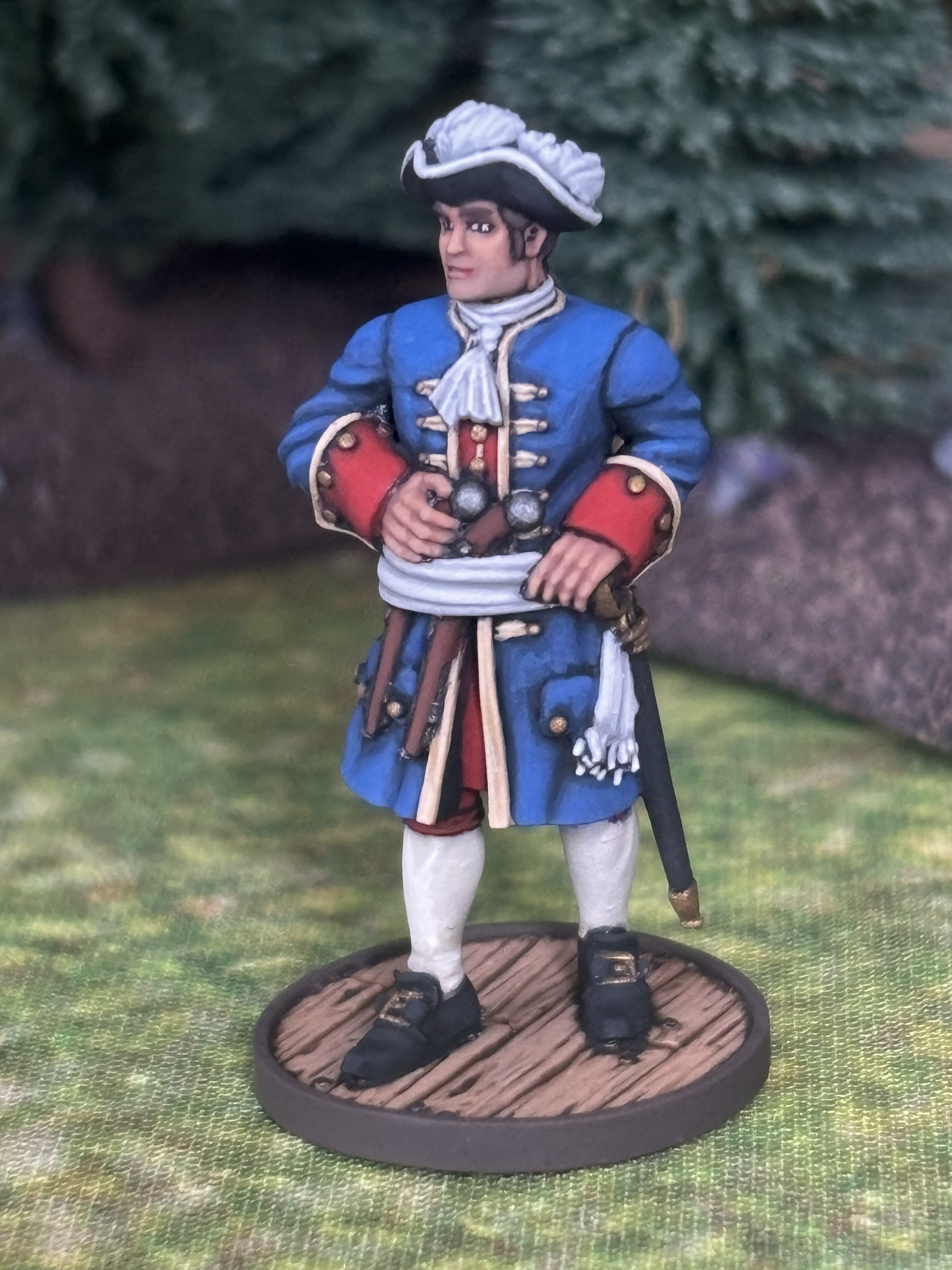 Modified custom Spanish Commander from the Box of Plunder fully painted by Tyler Carson