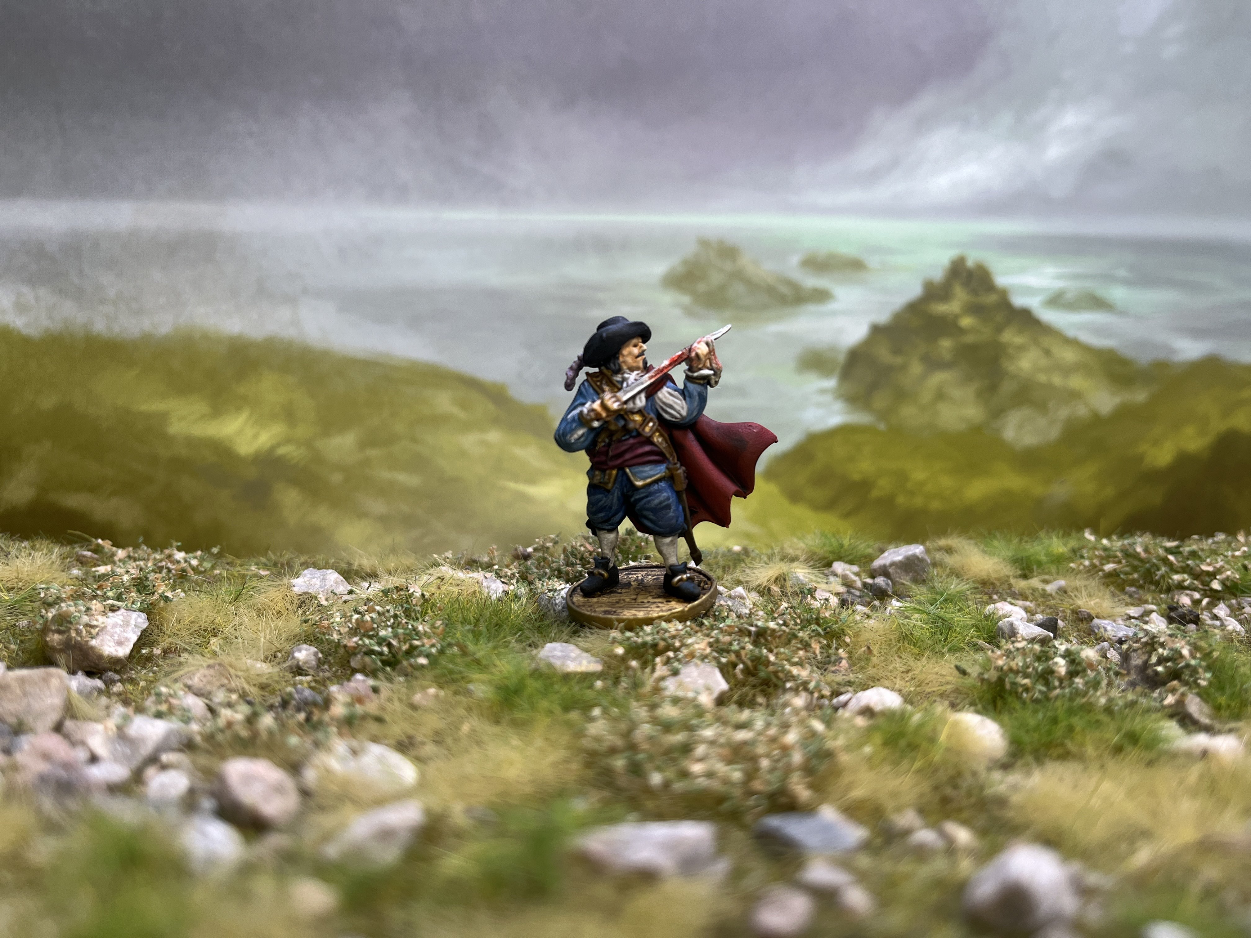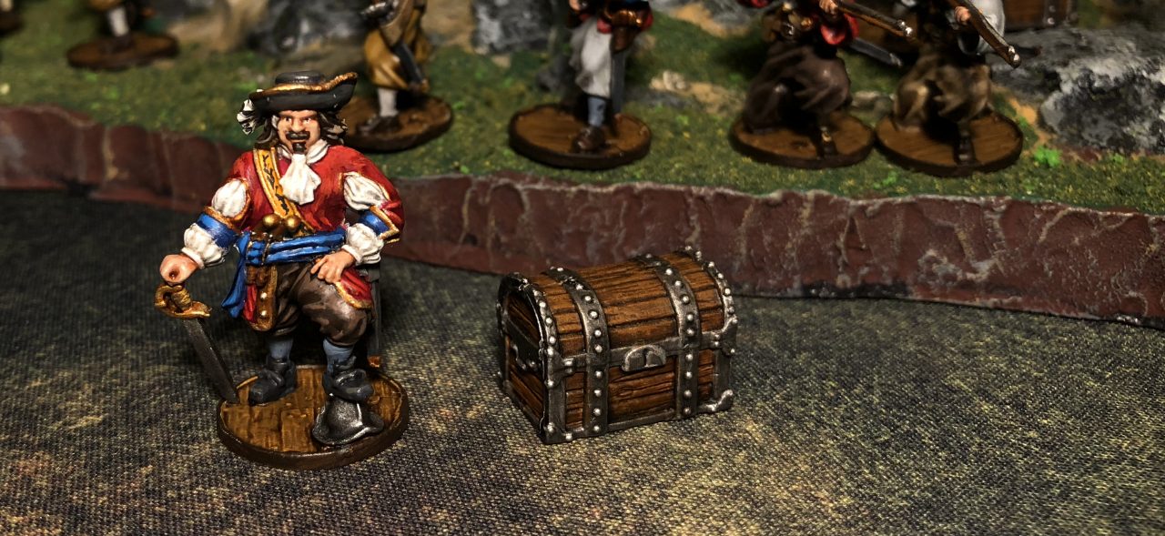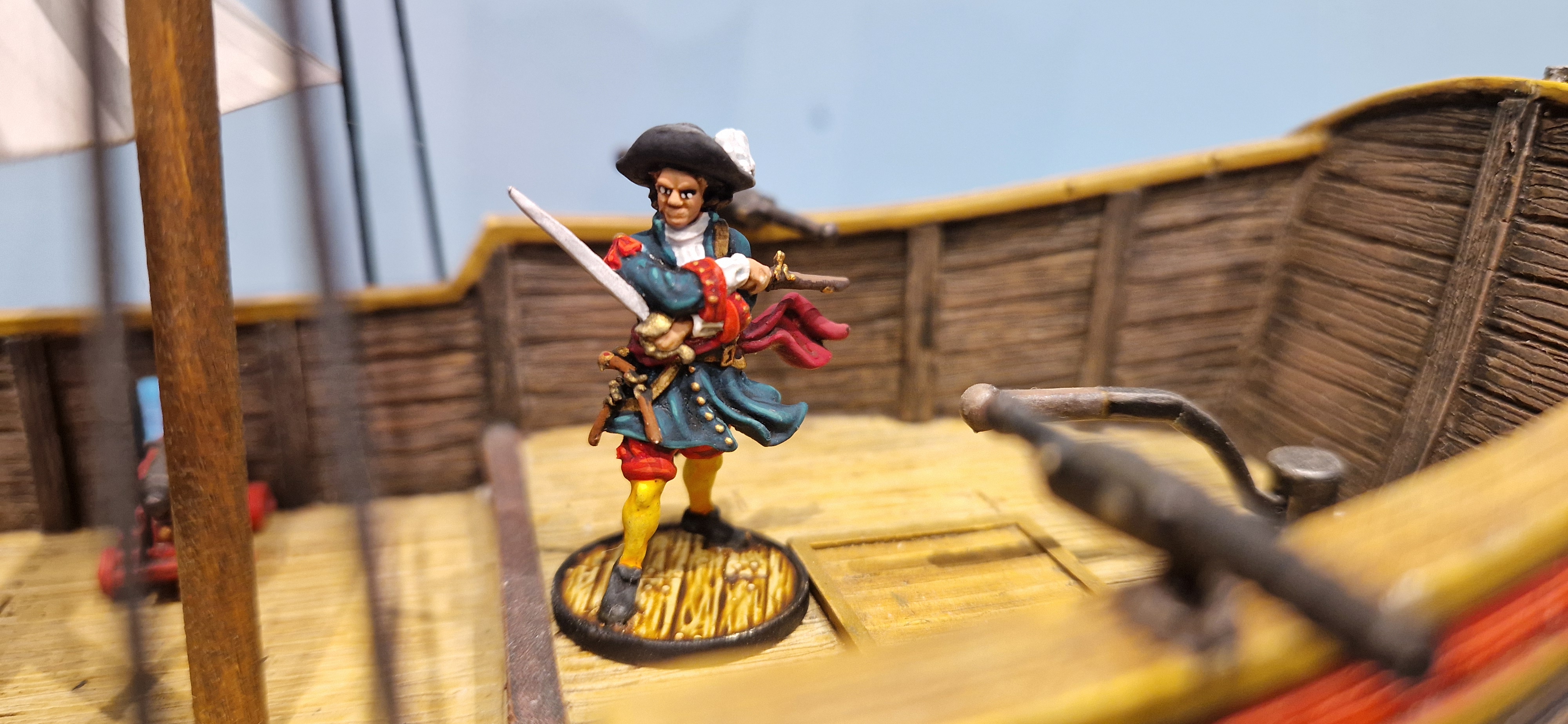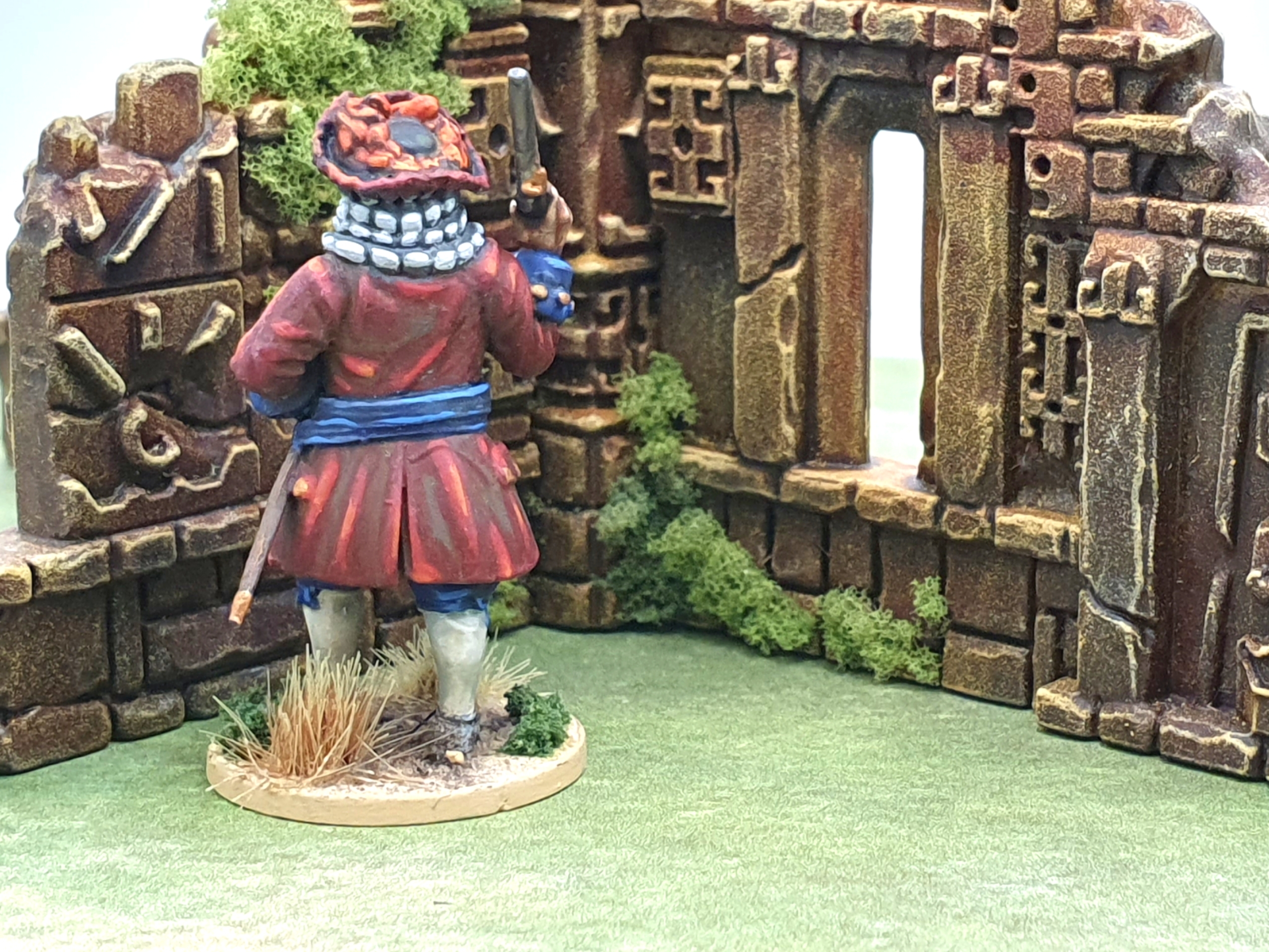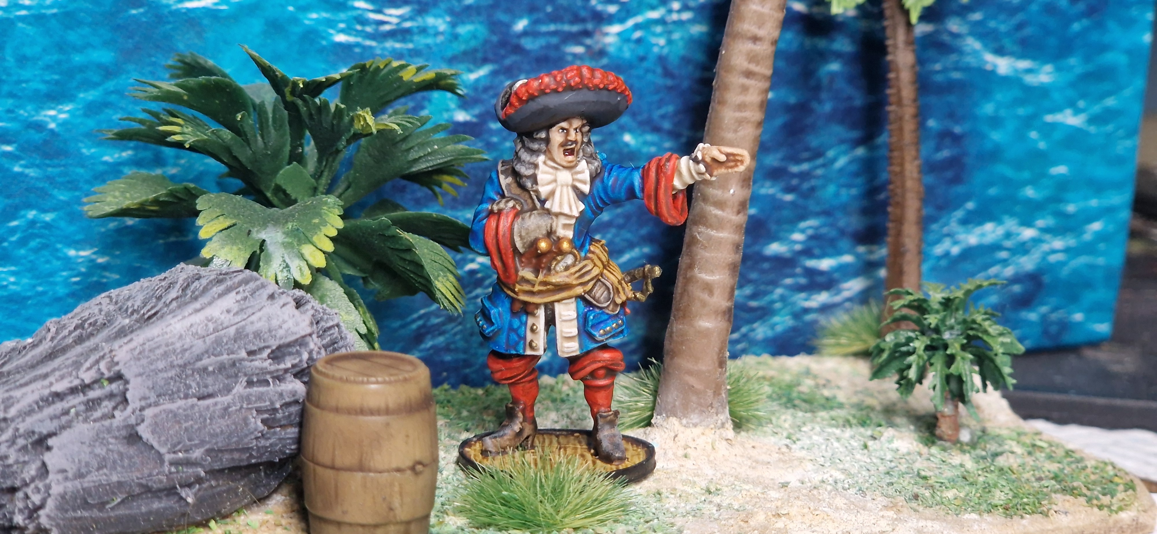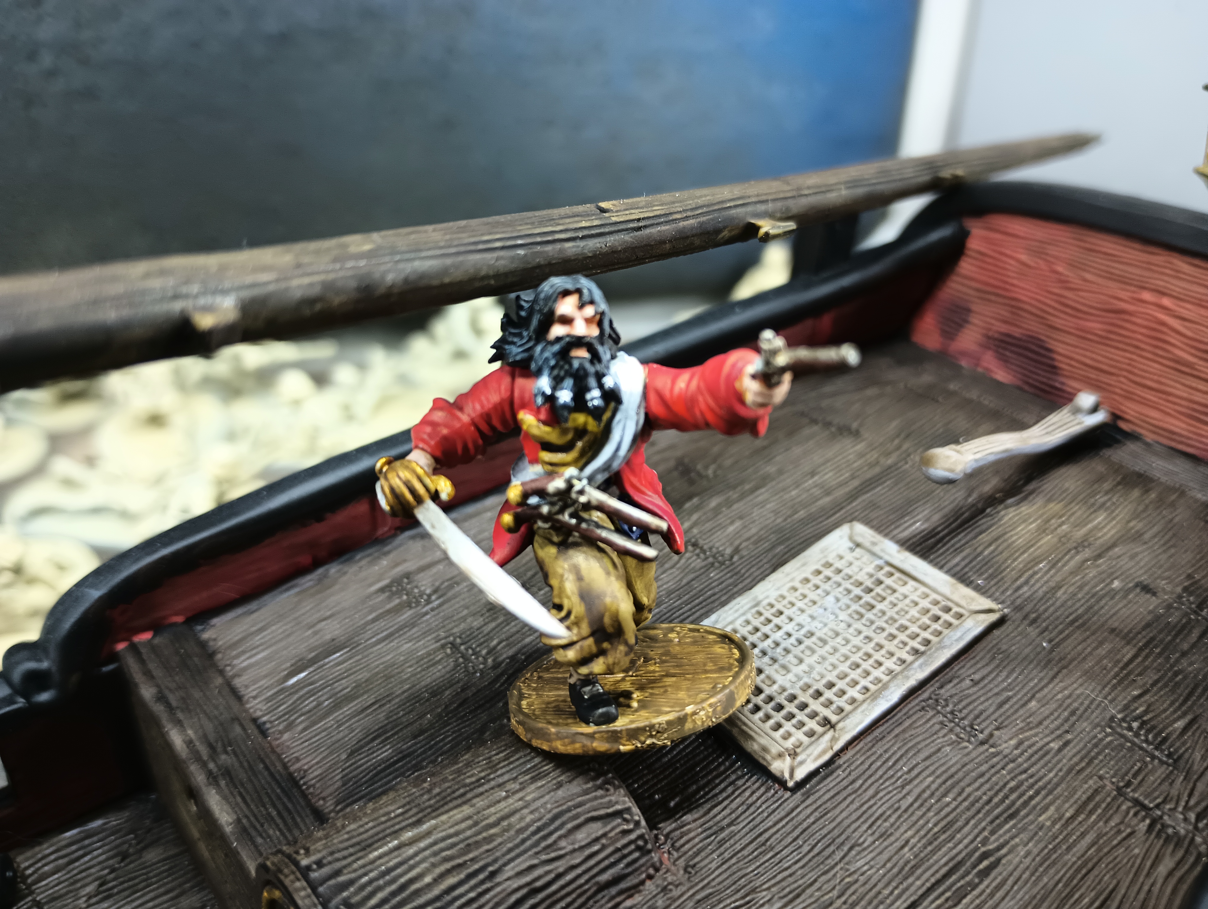 Modified custom Spanish Commander from the Box of Plunder fully painted by Tyler Carson
