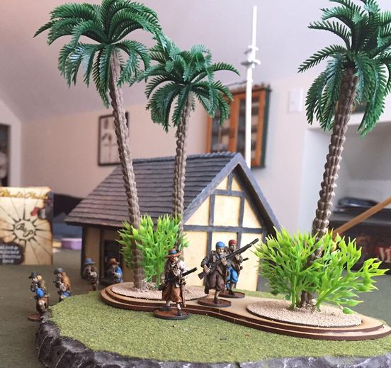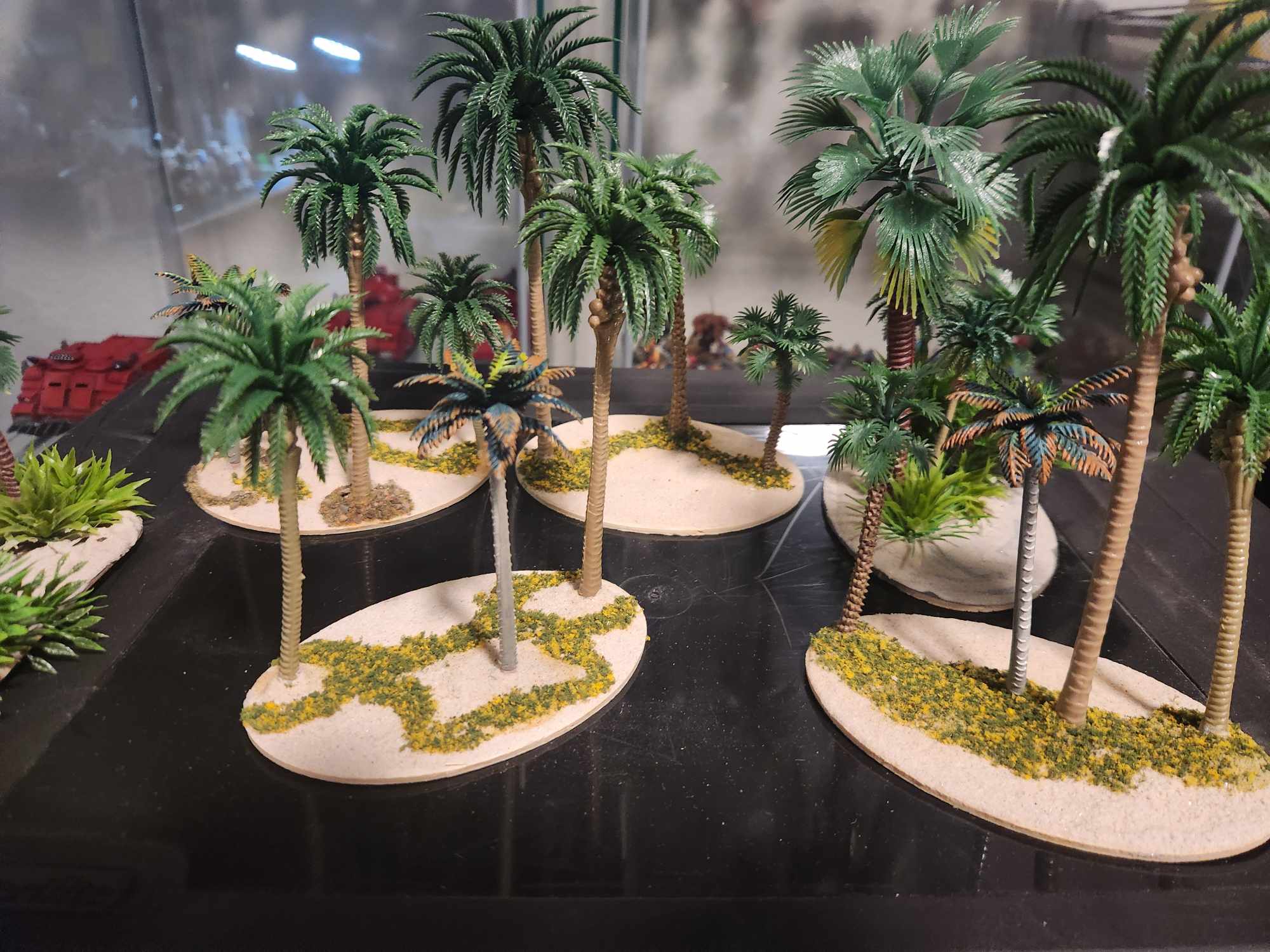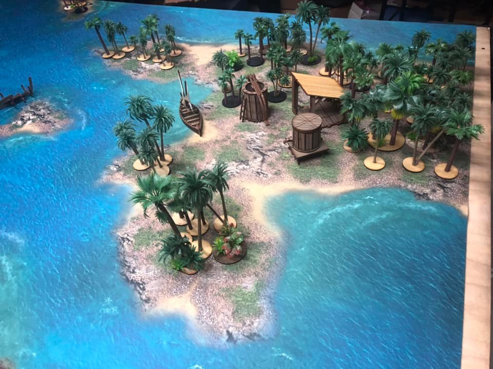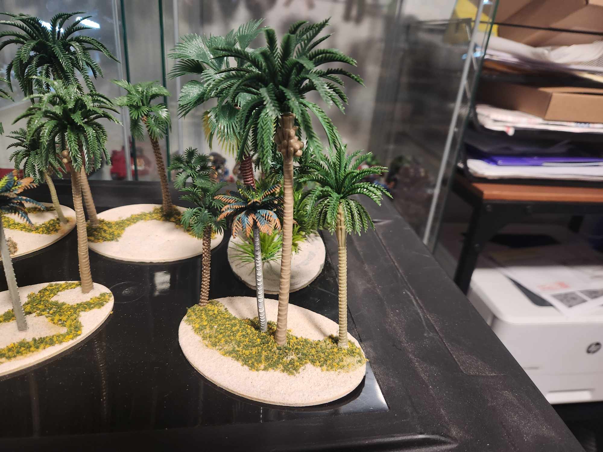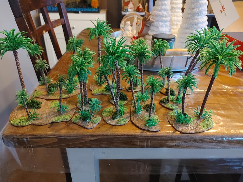 Palm trees on a coastal wargaming board by Jimmy Garrett