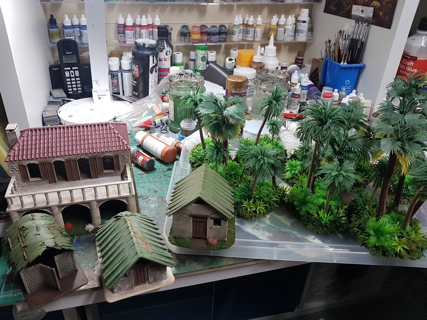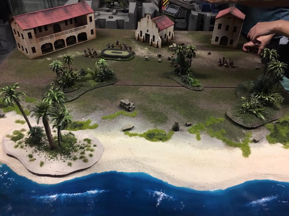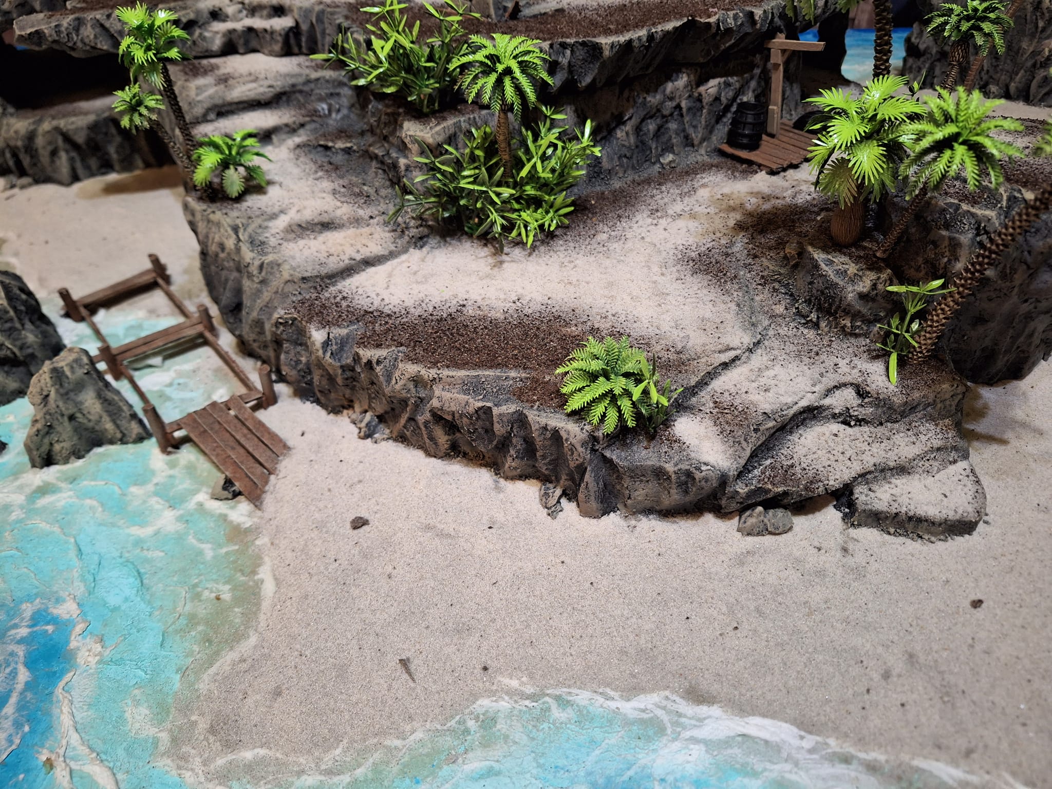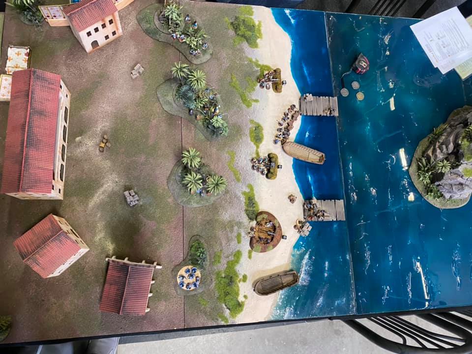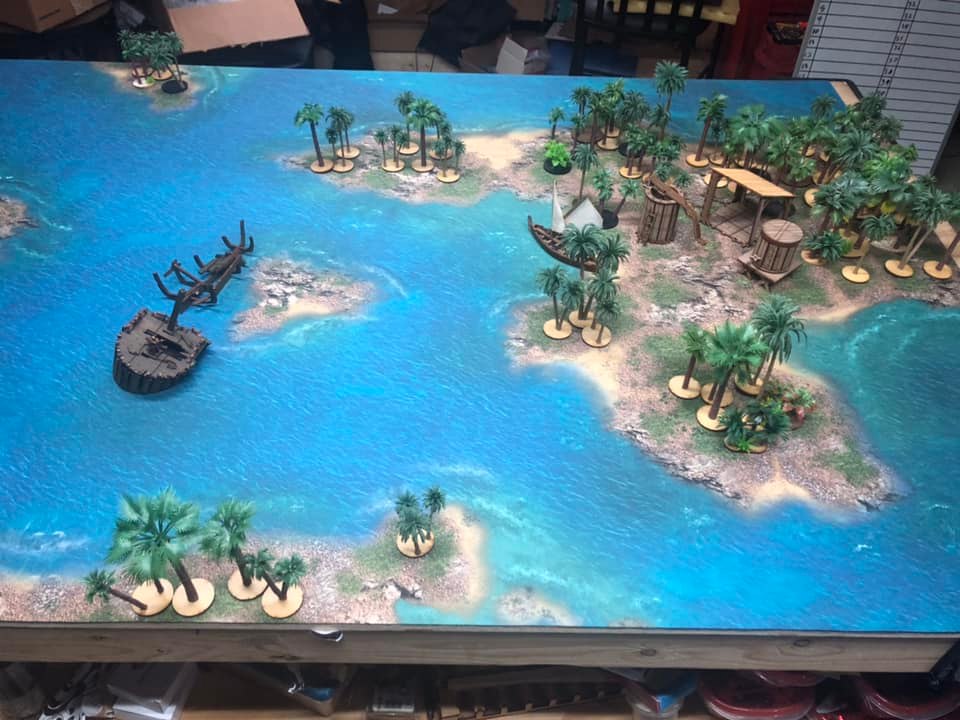 Palm trees on a coastal wargaming board by Jimmy Garrett