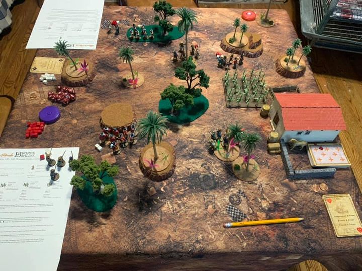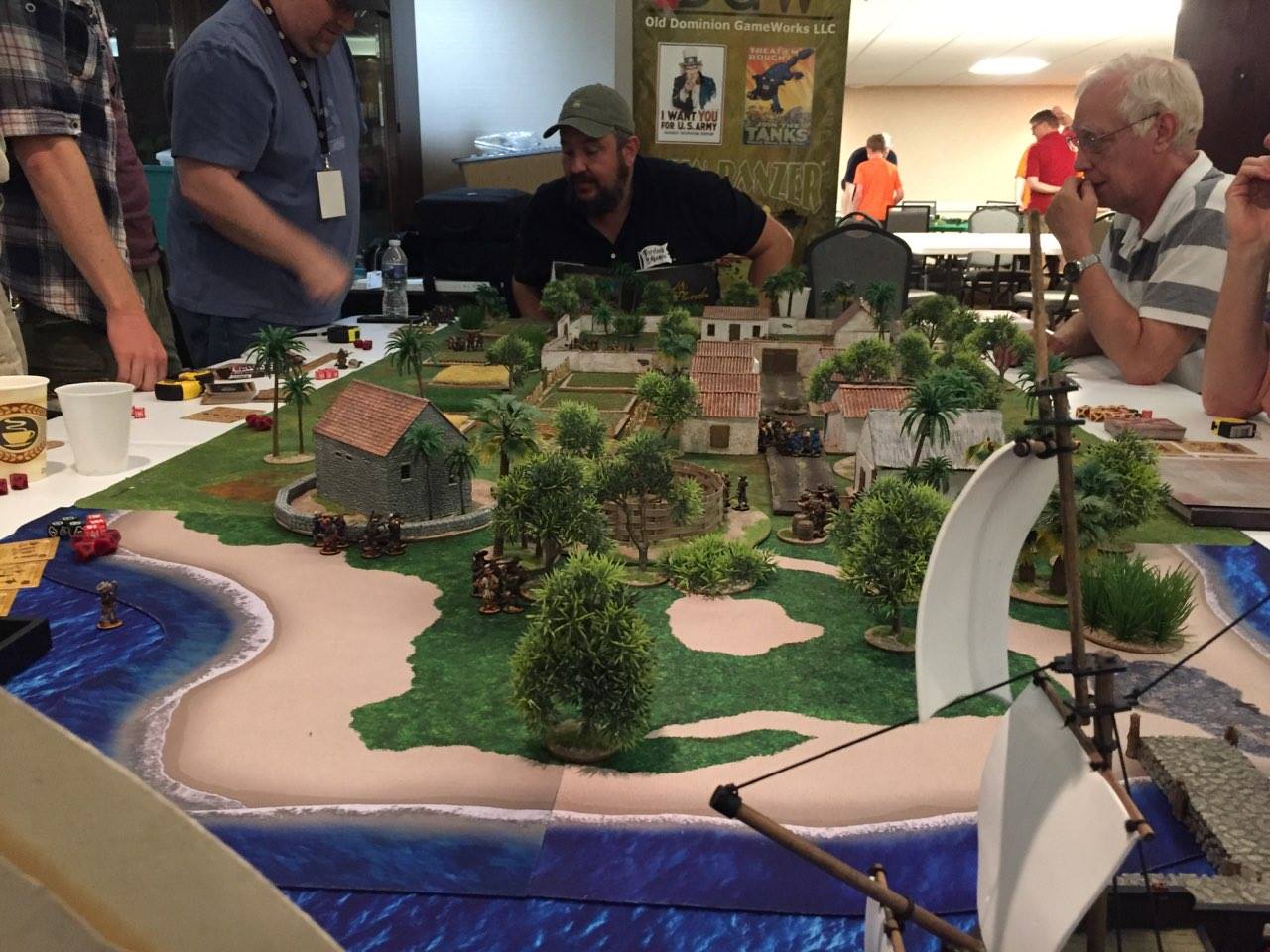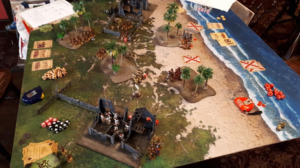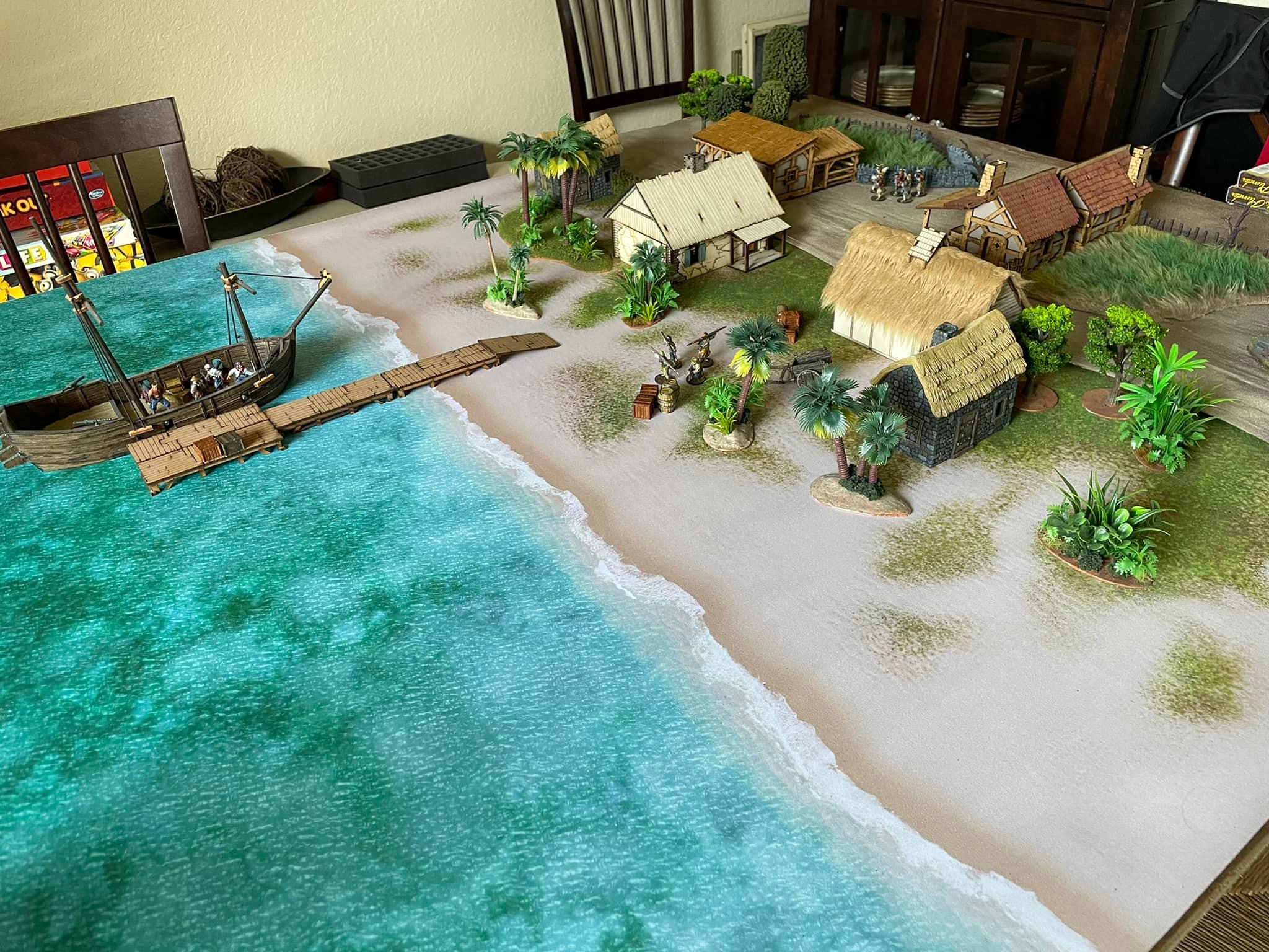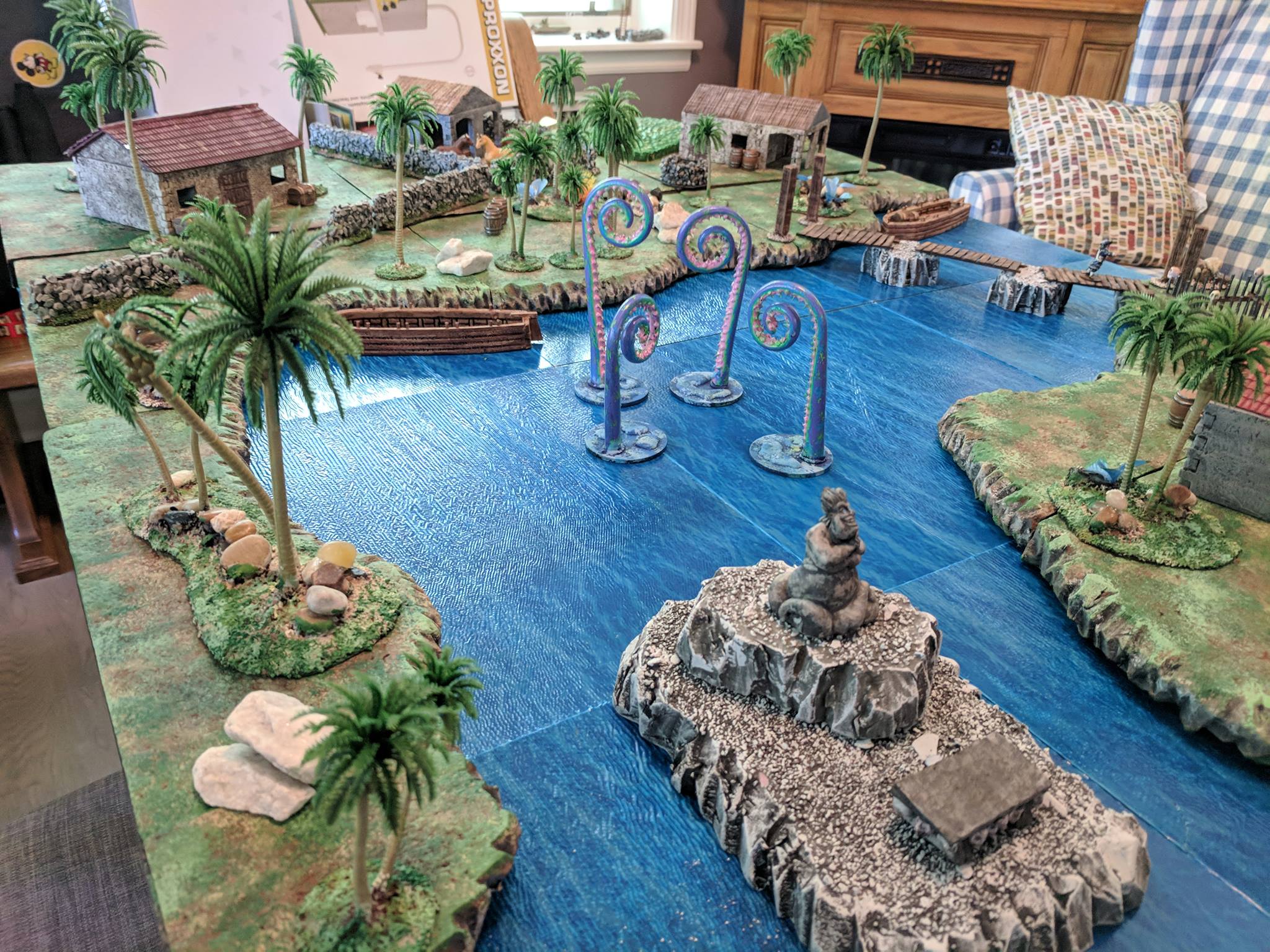 Palm trees on a coastal wargaming board by Jimmy Garrett