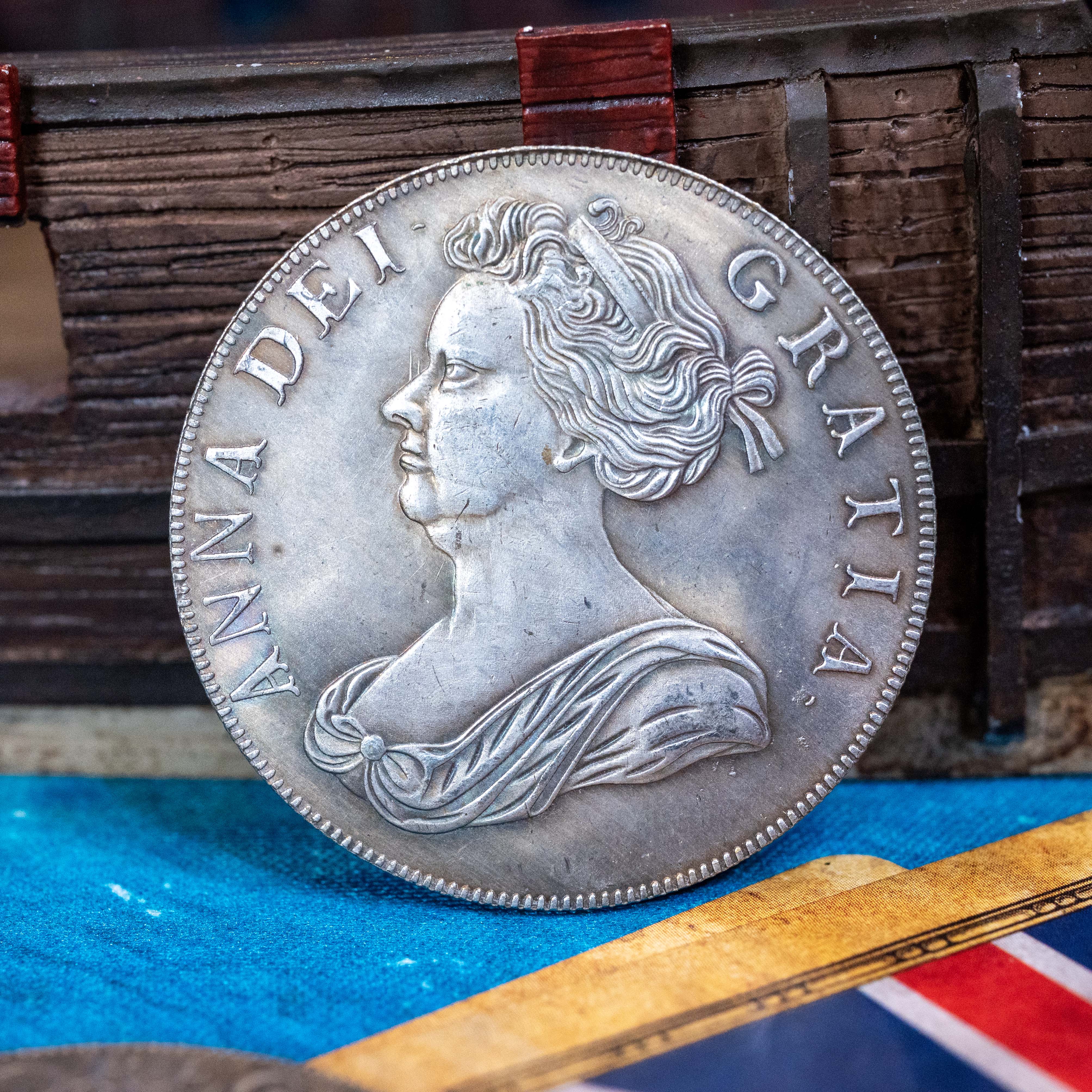 This reproduction of the 1706 Queen Anne Crownmakes a great Fortune Token for the English/British Blood & Plunder player. This is a large sized coin, measuring a little around 1.5″ in diameter.