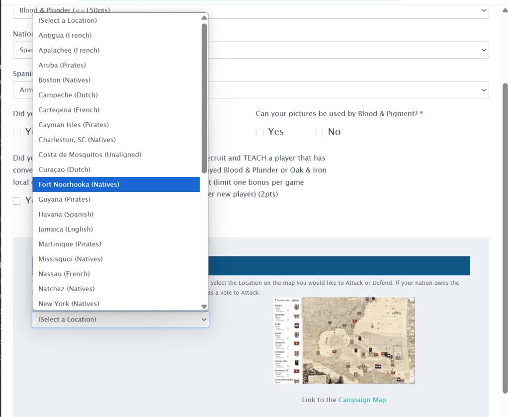 - When submitting your entry, you can pick a location or sea lane on the Campaign Map as a “vote” for where your conflict took place. If your nation owns the Location, you are helping to Defend that Location. If an enemy controls the Location, then you are helping to Attack.